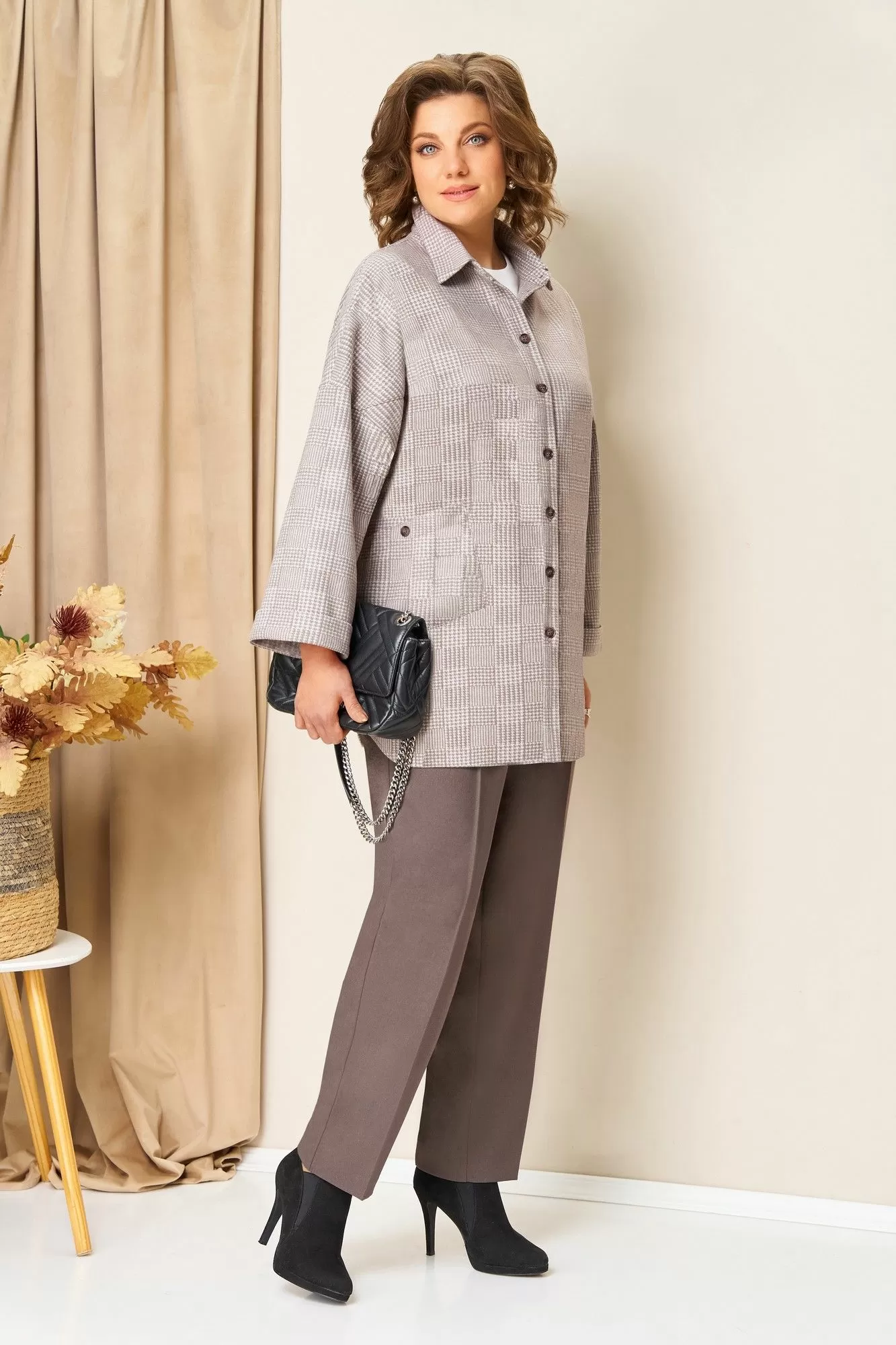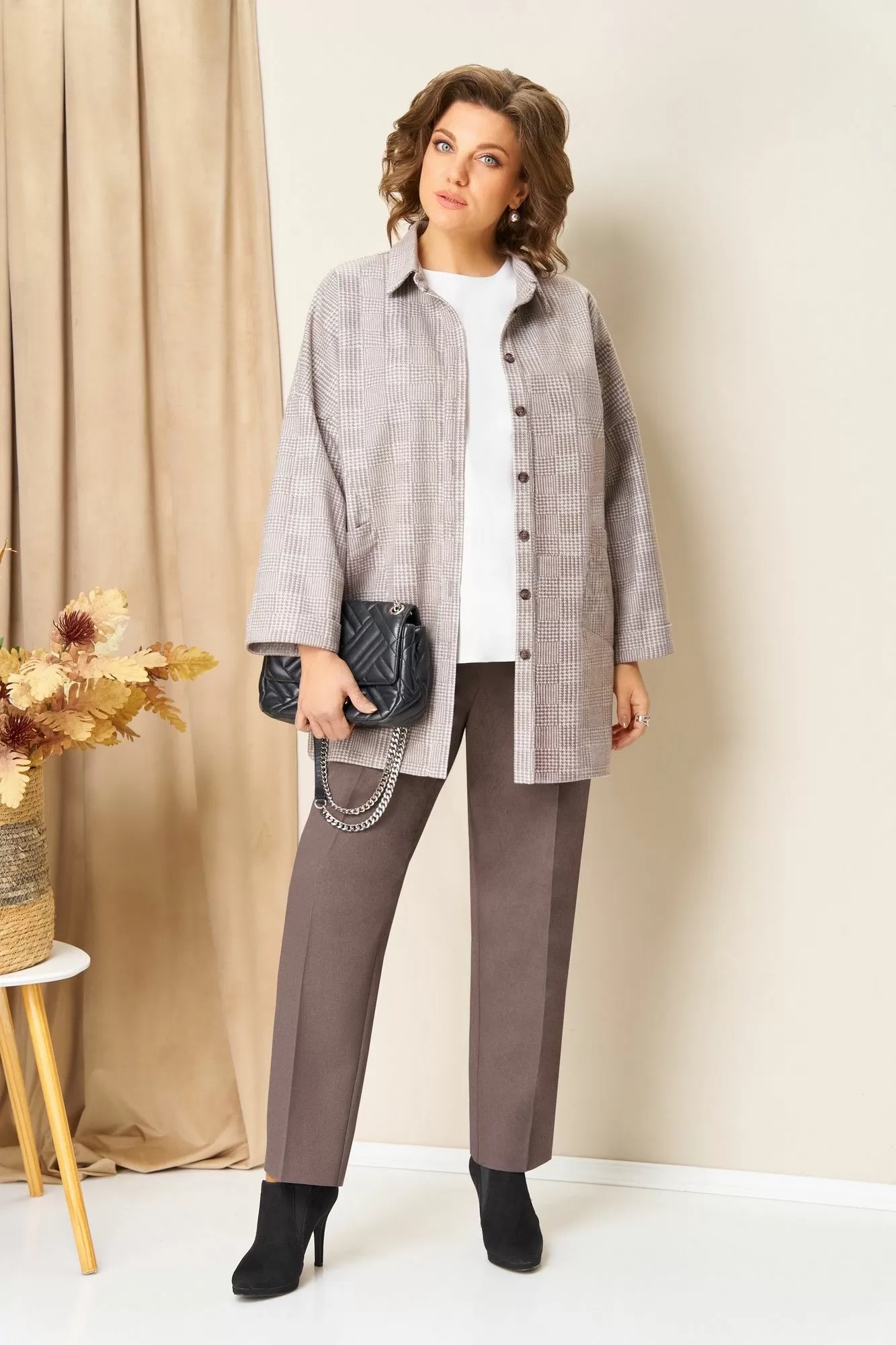 VOLNA 1438 бежевый_капучино(клетка), Брючный костюм